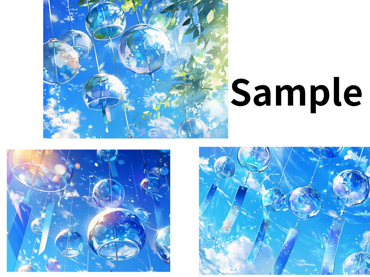 《夏空と風鈴》爽やかに響く涼の音|背景素材 6枚セット(4000×3000px PNG)
