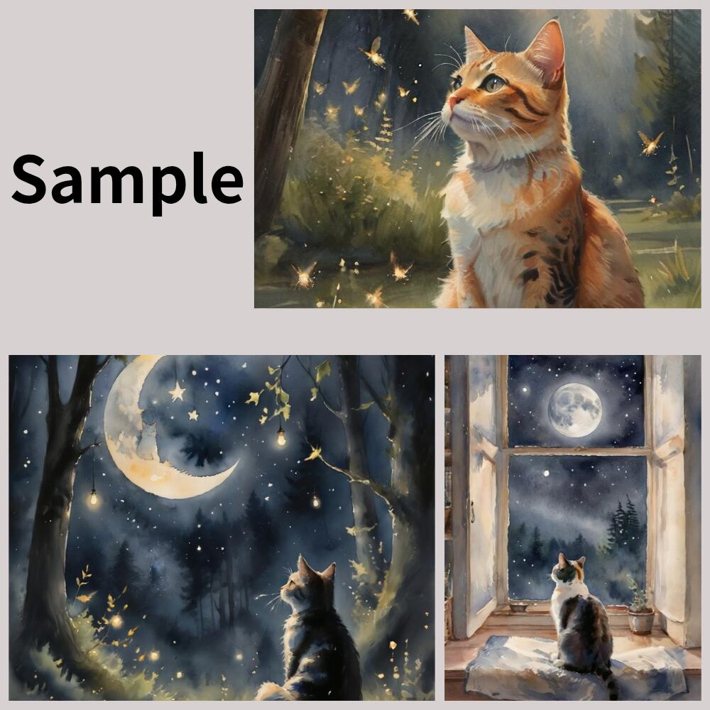 月明かりに照らされた幻想的な猫たちの背景イラスト3枚セットです。